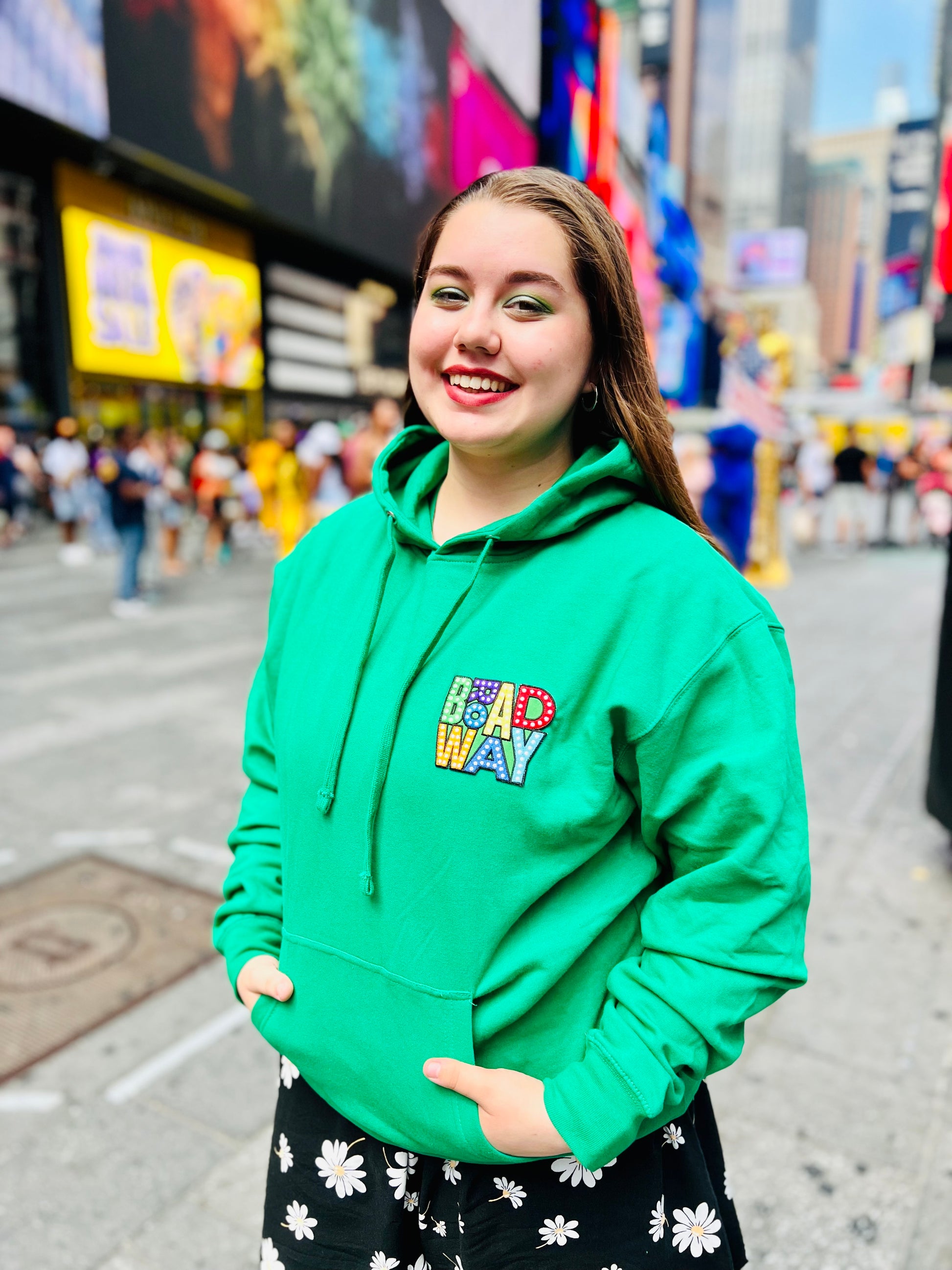 If you've ever come by our kiosk, or seen our social media, you know that green is DEFINITELY our color! And now you, too, can look like one of the Broadway Up Close Green Team! Our Green Broadway Hoodie Sweatshirt will put your theatrical pride on display front and center!